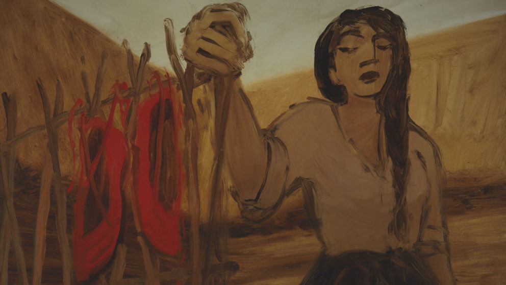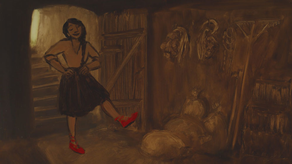 Herriko festa hasi da eta Róza ez dute dantzatzera gonbidatu. Bat-batean, ezezagun bat agertzen da, Róza dantzatzera gonbidatzen du eta zapata gorri pare bat ematen dizkio. Róza grina handiz hasten da dantzan eta berehala erakartzen du denen arreta. Handik gutxira ikusten du ezin dituela oinetakoak kontrolatu eta, aitzitik, zapatek bera kontrolatzen dutela.